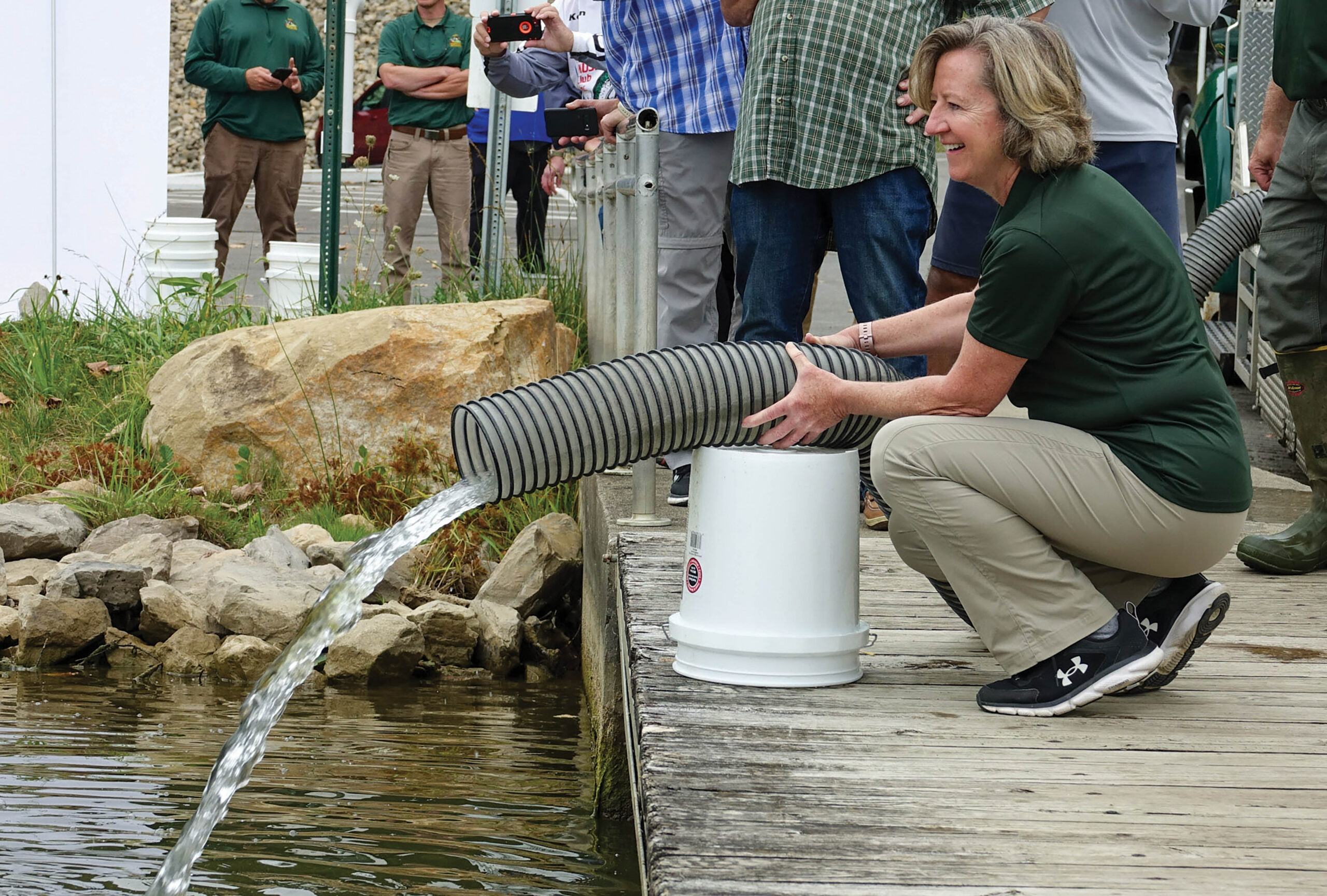 COLUMBUS — The Ohio Department of Natural Resources Division of Wildlife, in cooperation with the Ohio Huskie Muskie Club and Muskies, Inc., released 2,370 muskellunge in Piedmont Lake, in Belmont and Harrison counties, during a stocking event Sept. 25. Muskellunge, or muskies, are released by the Division of Wildlife annually in the fall.