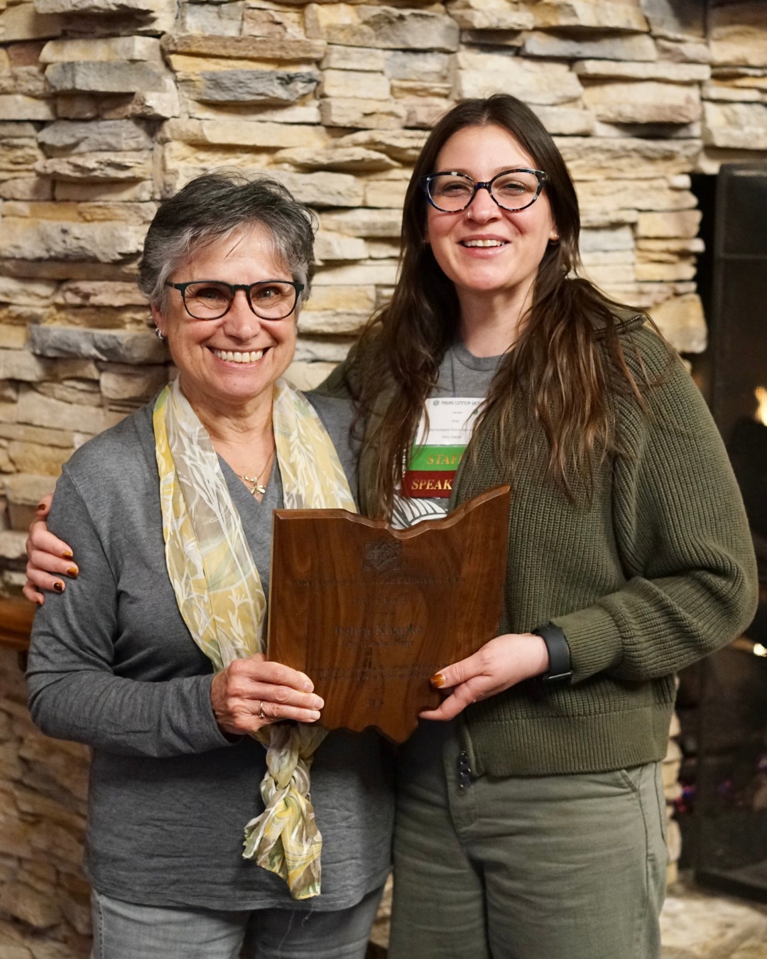 Bonnie Mitsui and Melinda O’Briant of Turner Farm in Hamilton County received the Stewardship Award, which recognizes outstanding contributions to the cultivation of sustainable agriculture. Debra Knapke of Franklin County received the Service Award, which recognizes extraordinary service in support of sustainable agriculture.