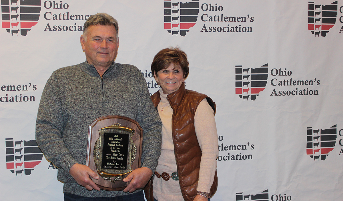 The Seedstock Producer of the Year is Jones Show Cattle, of Harrod, Ohio. Troy Jones and his dad, Randy, raise and sell Angus, Simmental and Maine-Anjou bulls, show heifers and bred heifers. Their animals have been sold to 24 different states in the past year.