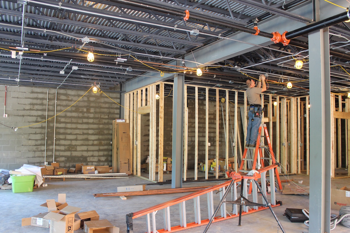 Electricians run the lines for the ground-level welcome area and Nature Center on the second floor.