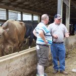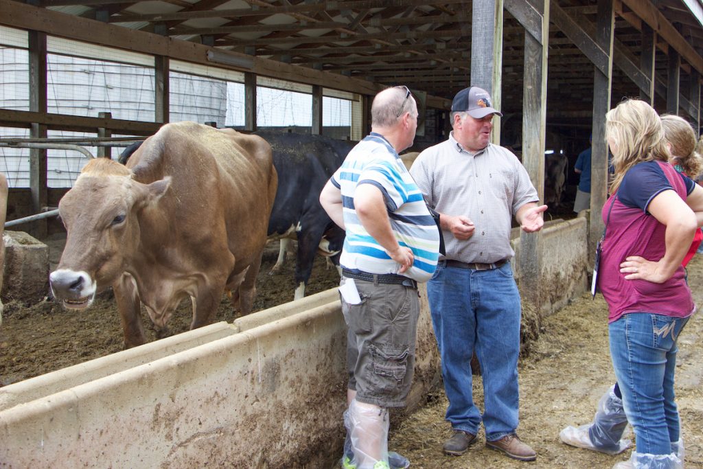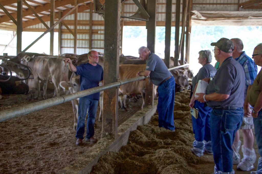Ron Michalovich, of RNR Swiss, talks with fellow producers at his farm in Lakeville about Brown Swiss genetics and the production quality of his herd.