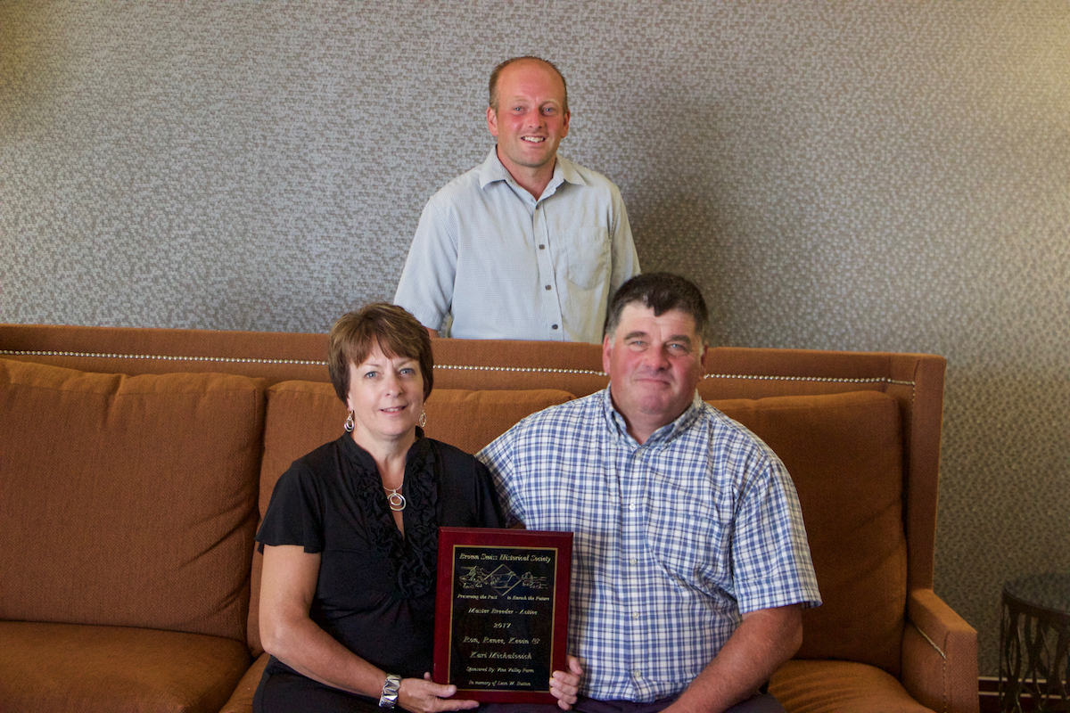 Ron and Renee Michalovich, of RNR Swiss, in Lakeville, Ohio, were honored with the Active Master Breeder award during the National Brown Swiss Convention in Canton, Ohio, July 7. They are pictured with their son Kevin.