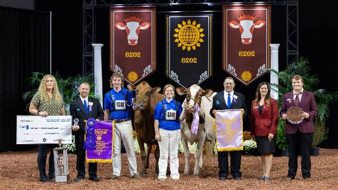 Tanner, Brennan, Marissa and Logan Topp of West Salem, Ohio took home the Senior and Grand Champion title for their cow Toppglen Wishful Thinking-ET, in the International Junior Ayrshire Show.