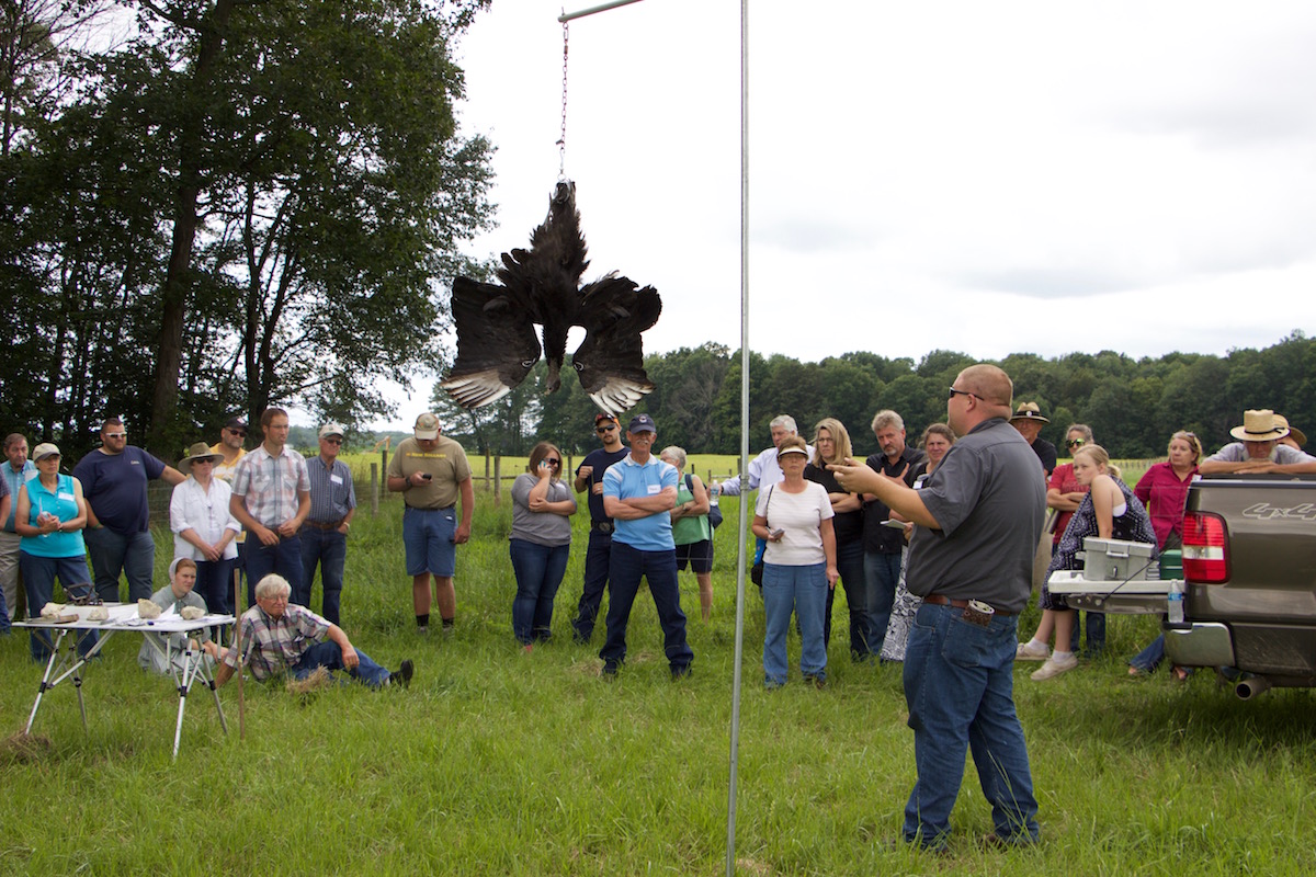 Tommy Butler, a certified wildlife biologist with USDA Wildlife Services, shows how producers can protect their flocks from black vultures.
