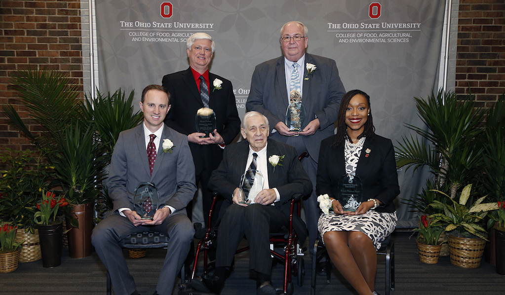 The Distinguished Alumni Awards were given to Bryan Garton (1993, Ph.D., agricultural education), Columbia, Missouri; Steve Goodwin (1973, B.S., parks, recreation and tourism administration), Johnstown, Ohio; Chris Henney (1998, B.S., agricultural education), Columbus; Phil Minerich (1976, B.S., food technology), Austin, Minnesota; Floyd Poruban (1964, M.S., 1961, B.S., plant pathology, horticulture), Avon, Ohio; and Kristi-Warren Scott (2003, B.S., agribusiness and applied economics), Washington, D.C.
