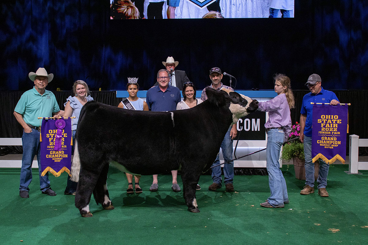 Delaney Jones, of Allen County, exhibited the reserve grand champion market beef steer, which was sold for $100,000 to Rauch Excavation and Demolition, of Dayton, Ohio, and Mark and Megan Kvamme, of Ohio Transparent Telecom. The previous record was $55,000.