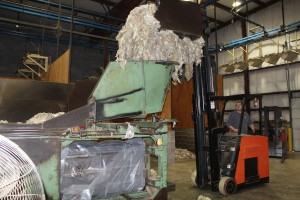 Each bale weighs 600-650 pounds and is wrapped in clear plastic, making long-term storage possible and allowing the co-op to handle and store a large quantity of wool. In a year’s time, the co-op produces about 2,900 bales. The bales are trucked from the plant to the wool mills with 72 bales making a full semi load.