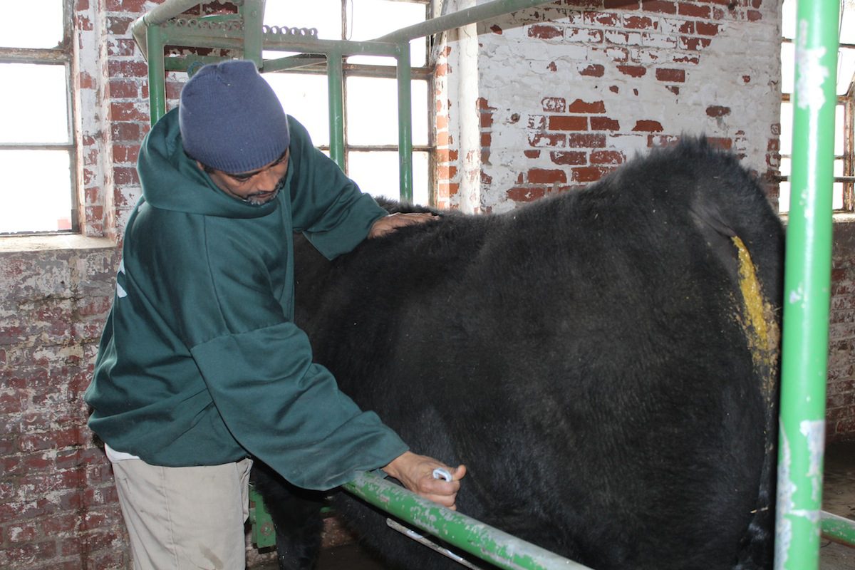 During the winter, the inmates focus on the cattle and preparing the better ones to be exhibited and auctioned for seedstock.