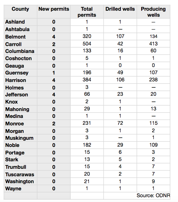 The February report showing Utica shale permits in Ohio.