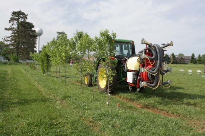 COLUMBUS — A new “intelligent” sprayer designed and developed jointly by engineers from Ohio State University’s College of Food, Agricultural, and Environmental Sciences and the U.S. Department of Agriculture’s Agricultural Research Service can reduce pesticide use up to 73 percent by growers while reducing off-target contamination.