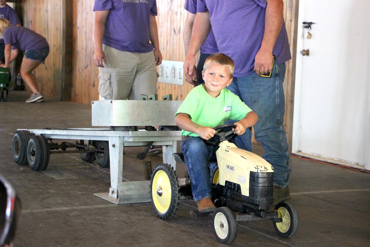 Jack Marvin, 4, gets a full pull in the 3- and 4-year-old division of the Medina County Fair kiddie tractor pull Aug. 5.