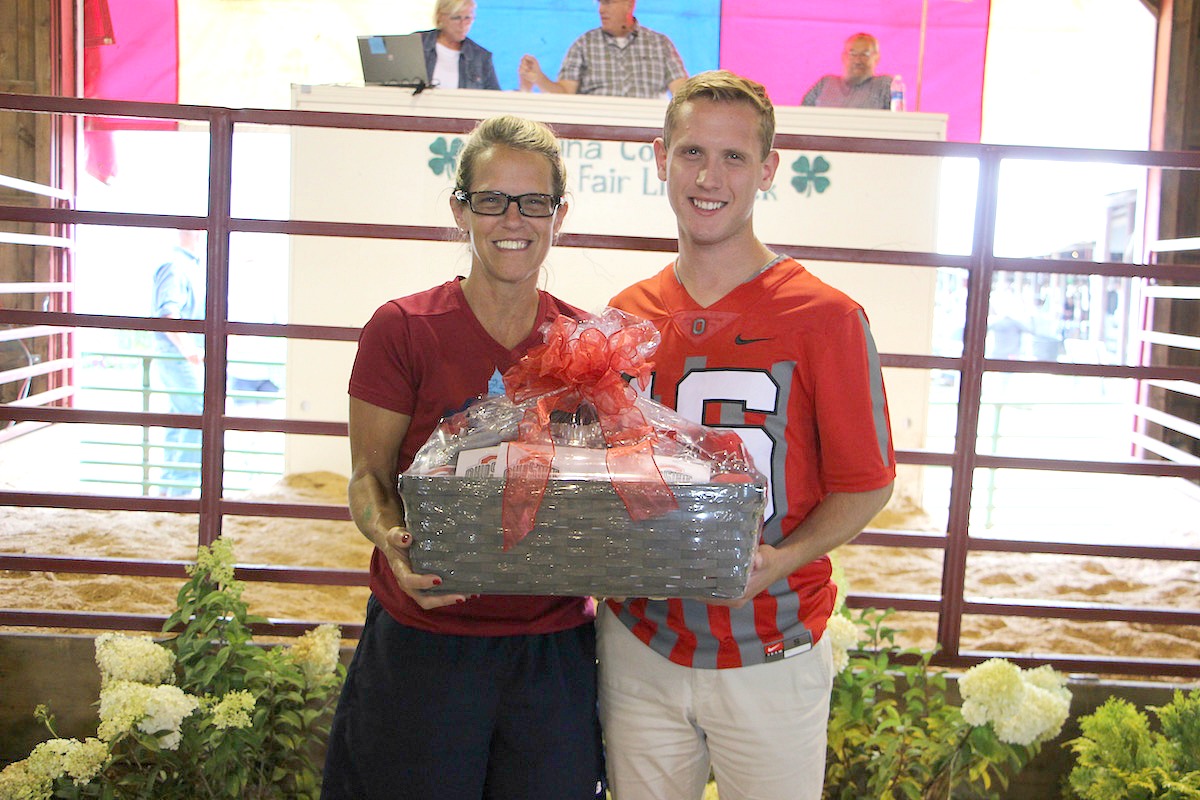 Dr. Kelly Parker purchased the 4-H Endowment Basket for a new record of $5,000. Also pictured Caleb Parker.
