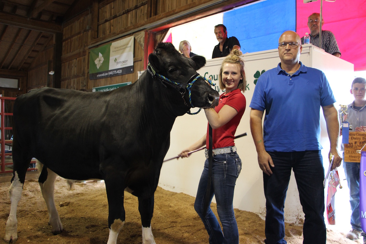 The Medina County Fair grand champion heavy feeder calf, weighing 1,100 pounds, was shown by Alexis Zgrabik and purchased by Brian Fehlan of Fehlan Insurance for $2.60 a pound.