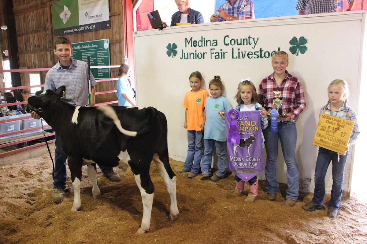The Medina County Fair grand champion starter calf, weighing 385 pounds, was shown by Joseph Mennell and purchased by Shaw Farms for $2.50 a pound.