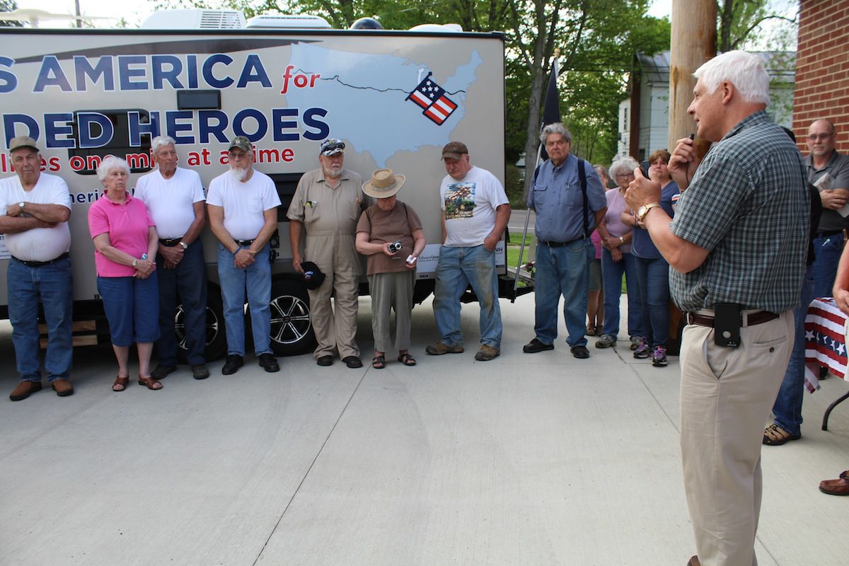 The trip is expected to take him at least three months to complete. Tuesday, May 13, he made a stop in Hayesville, a small town in Ashland County, to meet with supporters.