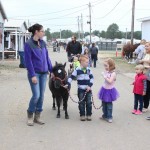 Christine Clark (left), Liam Clark, 5, and Kelsey Wade, 4, walk their miniature horse at the Portage County Fair Aug. 26. Other fairgoers stop to meet the horse. (Catie Noyes photo)