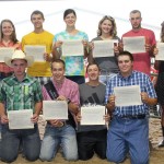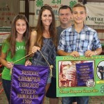 The donated market turkey basket sold for $1,000 to the four exhibitors of champion hogs at the Portage County Fair. Those exhibitors were Hunter Horning (back left), Olivia Blay, Sammy Eckhart, Tyler Lenington (front left). Representing the entry was MacKenzie Campbell (far right), Chad Sasala and Jessica Martin.