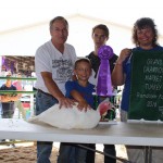 Brycen Sveda sold his 12.65-pound grand champion goose for $500 to Bruce Smith of De-Lux Mold and Machine.