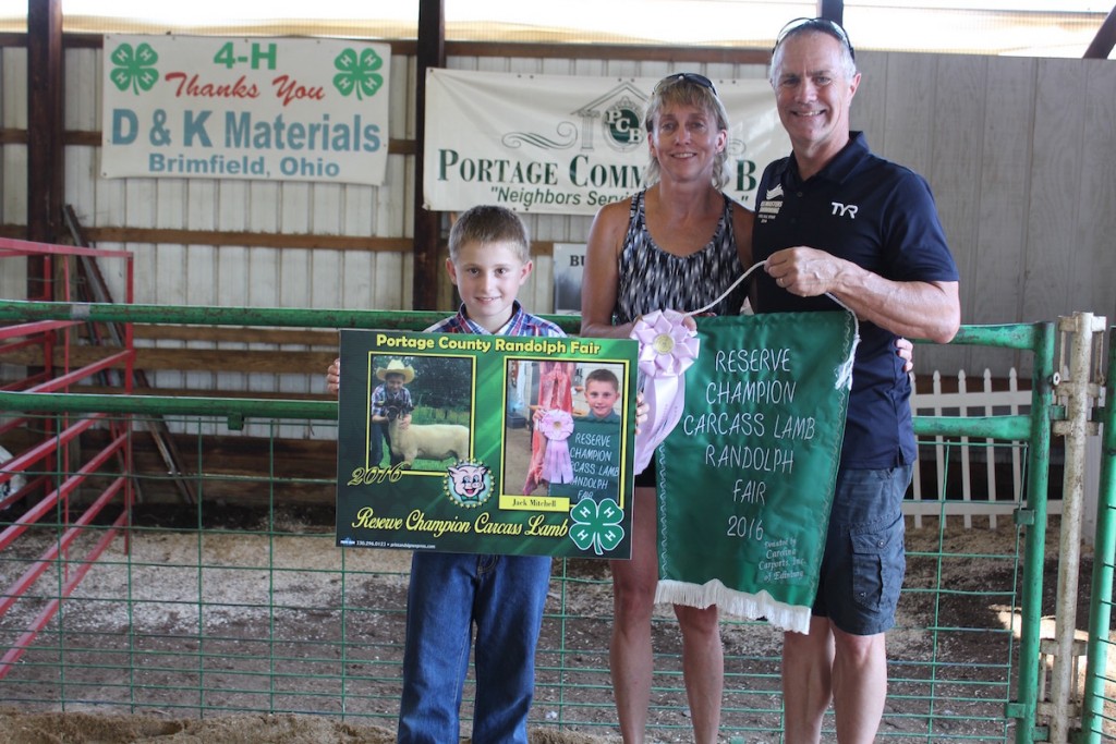 Jack Mitchell sold his 48-pound reserve champion carcass lamb for $13.50 a pound to Laura and Jack Groselle.