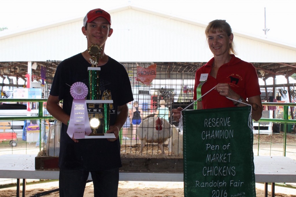 Michael Kline sold his 29.25-pound pen of reserve champion chickens for $650 to Brad and nancy Polen, of Polen Meats.