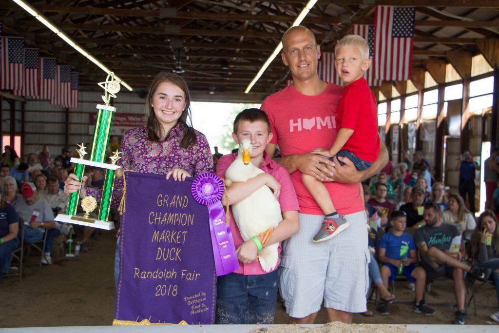 The Portage County Fair grand champion market duck, weighing 7.25 pounds, was shown by Drake Rennecker and purchased by Ahrens Farms and Stable, represented by Curtis and Even Ahrens, for a new record of $900. Also pictured Madelyn Rennecker. rOriginal Caption:The Portage County Fair grand champion market duck, weighing 7.25 pounds, was shown by Drake Rennecker and purchased by Ahrens Farms and Stable, represented by Curtis and Even Ahrens, for a new record of $900. Also pictured Madelyn Rennecker.
