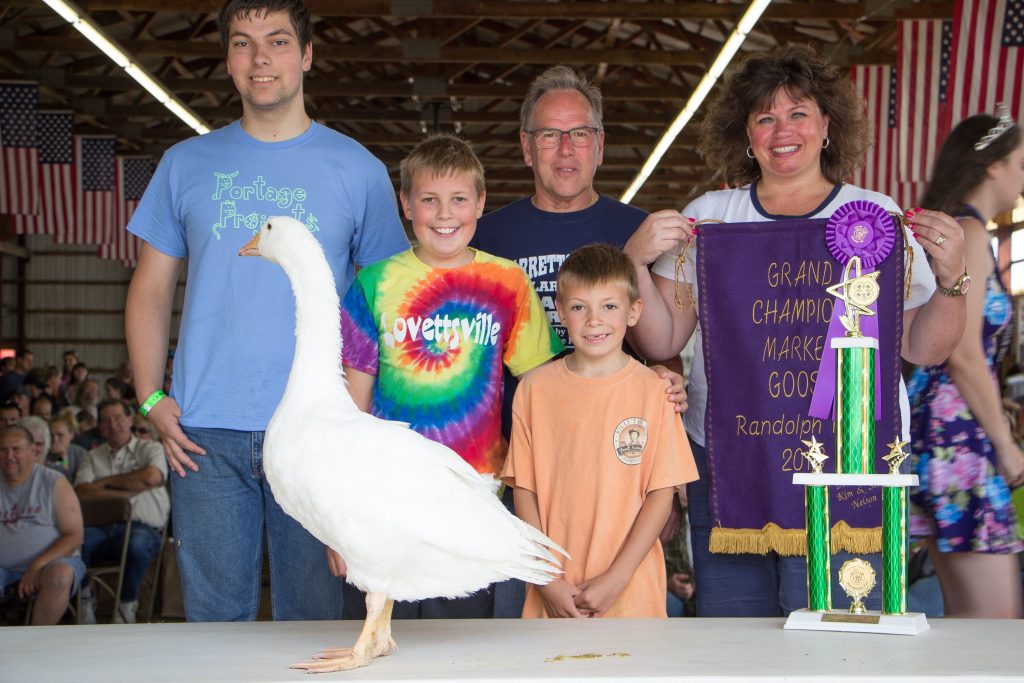 The Portage County Fair reserve champion market goose, weighing 9.8 pounds, was shown by Collin Timms and purchased by Paul and Paula Hyde of Hyde's Automotive for $600. rOriginal Caption:The Portage County Fair reserve champion market goose, weighing 9.8 pounds, was shown by Collin Timms and purchased by Paul and Paula Hyde of Hyde’s Automotive for $600.