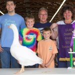 The Portage County Fair grand champion market goose, weighing 10.3 pounds, was shown by William Baer and purchased by Deluxe Mold and Machine, represented by Bruce Smith, and Commissioner Sabrina Christian-Bennett for $900. Also pictured, Zachary and Joshua Haag. rOriginal Caption:The Portage County Fair grand champion market goose, weighing 10.3 pounds, was shown by William Baer and purchased by Deluxe Mold and Machine, represented by Bruce Smith, and Commissioner Sabrina Christian-Bennett for $900. Also pictured, Zachary and Joshua Haag.