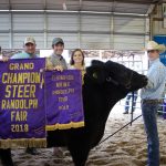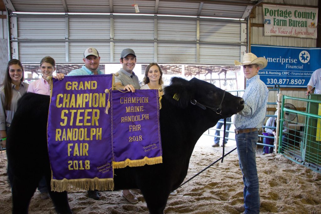 The Portage County Fair grand champion market steer, weighing 1,375 pounds, was shown by Harrison Blay and purchased by Sarchione Chevrolet, represented by Jeff Sarchione, Molly Horning and Dane Wise, for $8.50 a pound.