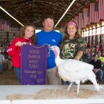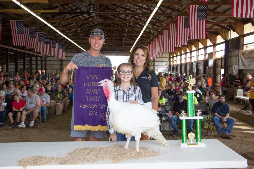 The Portage County Fair grand champion market turkey, weighing 28.15 pounds, was shown by Jessica Mix and purchased by Denise and Scott Horning of Horning Heated Storage and Ameriprise Financial for $900. rOriginal Caption:The Portage County Fair grand champion market turkey, weighing 28.15 pounds, was shown by Jessica Mix and purchased by Denise and Scott Horning of Horning Heated Storage and Ameriprise Financial for $900.
