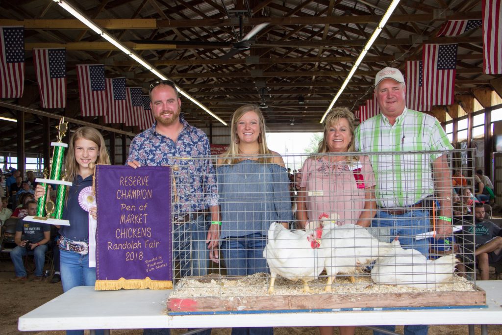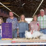 Katrina Richards' reserve champion market chicken pen, weighing 32.2 pounds, sold to Paul Adelman Trucking, represented by Steve, Debbie, Emily and Joey Adelman, for $1,250. rOriginal Caption:The Portage County Fair reserve champion market chicken pen, weighing 32.2 pounds, was shown by Katrina Richards and purchased by Paul Adelman Trucking, represented by Steve, Debbie, Emily and Joey Adelman, for $1,250.