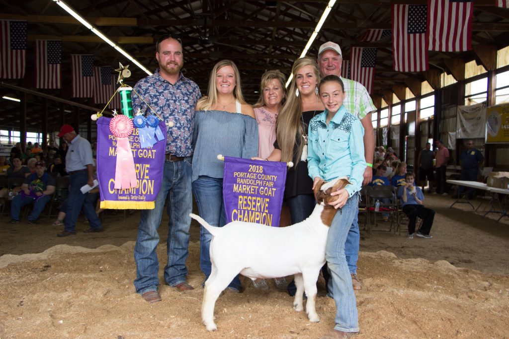The Portage County Fair reserve champion market goat, weighing 79 pounds, was shown by Kamryn Lynn and purchased by Paul Adelman Trucking, represented by Steve, Debbie, Stevie Jo, Emily and Joey Adelman, for $1,200. rOriginal Caption:The Portage County Fair reserve champion market goat, weighing 79 pounds, was shown by Kamryn Lynn and purchased by Paul Adelman Trucking, represented by Steve, Debbie, Stevie Jo, Emily and Joey Adelman, for $1,200.