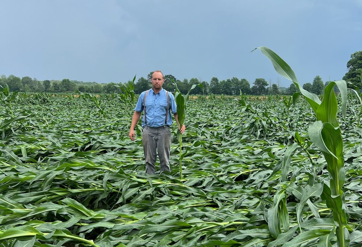 Mast, of Horizon Acres, in Jamestown, Pennsylvania, is hoping the cornfield will stand back up on its own. He’s seen it happen before as long as the stalks aren’t broken and roots aren’t pulled out. If it doesn’t recover in a couple of weeks, he’ll chop it for silage.