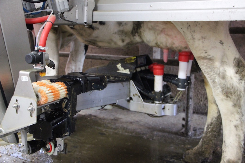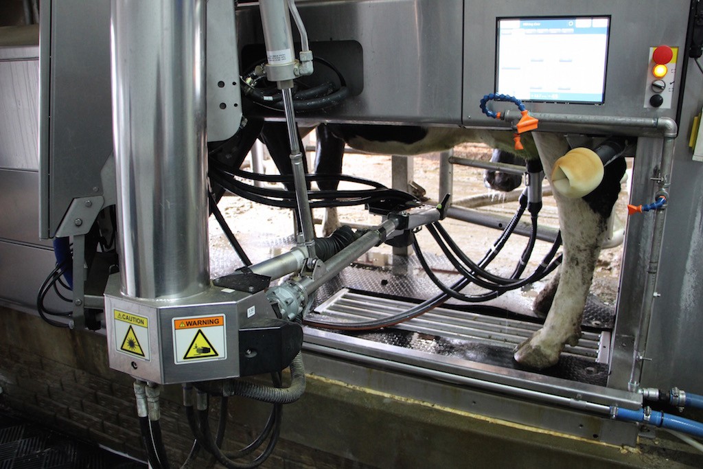 A majority of the time, repairs are minor, but when a machine does have an issue, the farmer receives an automated phone call letting him or her know the robot is not functioning properly. “Ninety percent of the stuff can be fixed right from your phone,” said McKelvey, noting it could just be glitch in the software. But sometimes the call requires a trip to the barn to re-connect a hose that was kicked off by an impatient cow or to clean off a laser or sensor that is too dirty to function.
