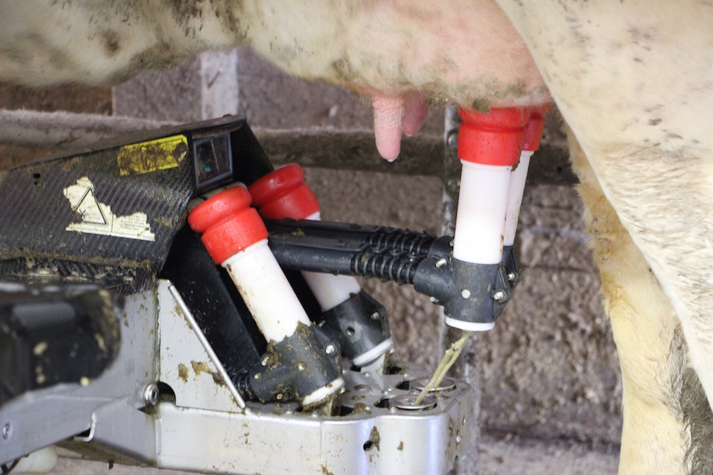 Both Lely and DeLaval robotic milking units use a series of lasers and sensors to guide robotic arms under the cow.
