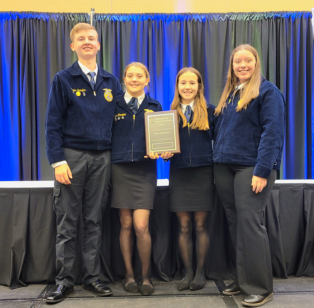 At the national contest held during the National FFA Convention in Indianapolis, the team performed earned 13th place in the nation and a gold team rating. Individually, Jocelyn, Grace and Kyleigh received gold ratings, while Garrett earned a silver rating.