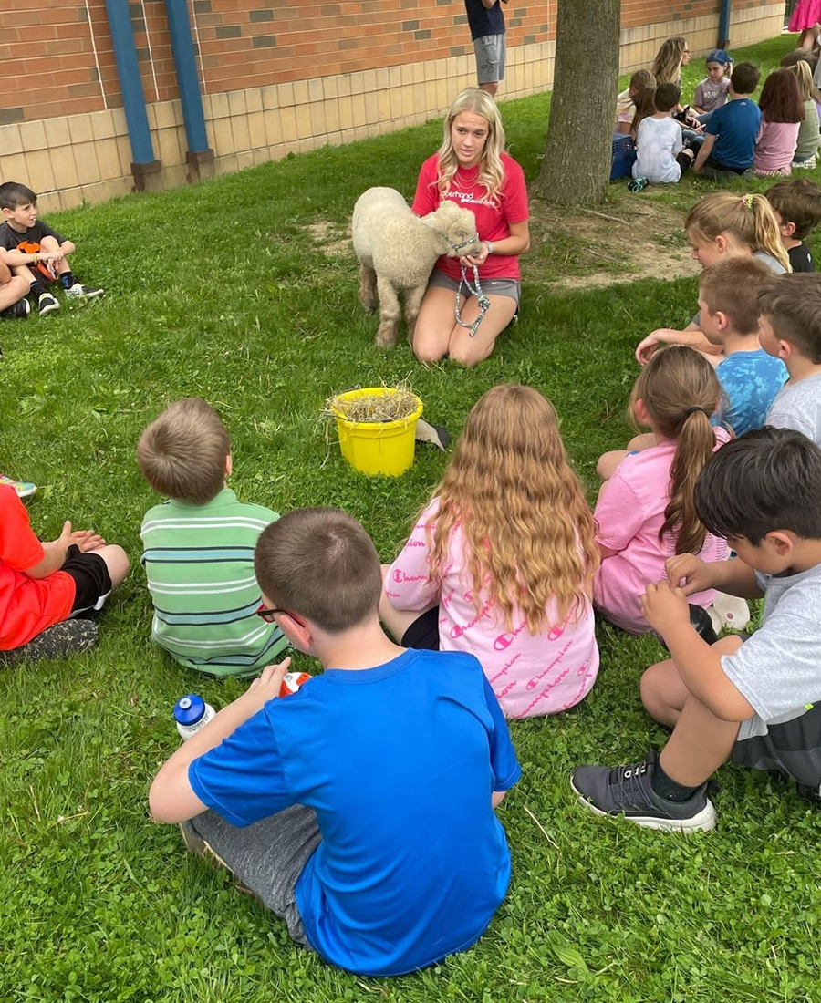 At the end of the school day, the students who drove their tractor to school were able to participate in a tractor parade for the first graders. After the parade the children were able to move through different stations to pet animals.
