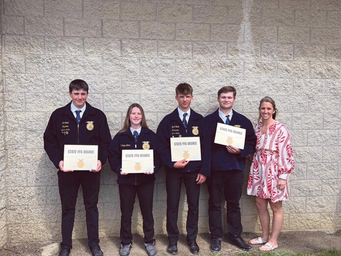 RACINE, Ohio — Racine Southern FFA chapter had four members earn their state degrees this year. They included Corey Seth, Michelle Adkins, Will Smith and Wyatt Smith.