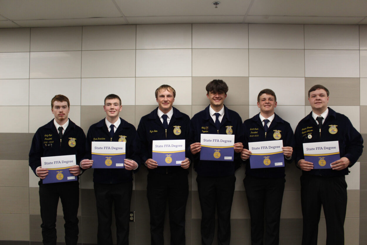 The chapter degree recipients included Henry Abram, Tyson Boley, Jayde Davis, Landon Davidson, Savannah Gundert, Scott Hook, Autumne Jones, Jaclyn Krakomperger, Shelby Manning, Brandi McCraw, Estella Ohly, Jillian Stannard and Joshua Wright. The State Degree recipients included Natalie Calfo, Alaina Collins, Heather Reininger and Mollie Shinsky.