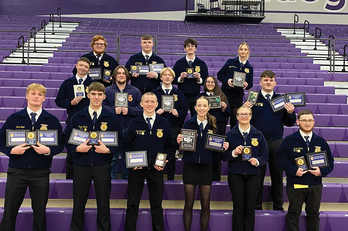 MILLERSBURG, Ohio — During the District and Regional Evaluation in February, members of the West Holmes FFA were evaluated on their individual Supervised Agricultural Experience applications and FFA officer books. This year the chapter was represented by three members who submitted officer books, 11 members who applied for proficiency awards, 16 members who applied for State Degrees, one member who applied for a Star State Degree and seven members who applied for American Degrees.