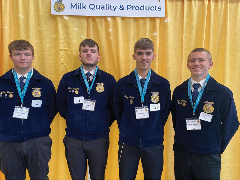 The team advanced to the National contest after placing first in the Ohio FFA Milk Quality & Products Career Development Event at The Ohio Exposition Center in Columbus on March 23. Individually, Springer finished first, Kapper finished second, Wolford placed eighth and Baker placed 15th out of 137 competitors in the state contest.