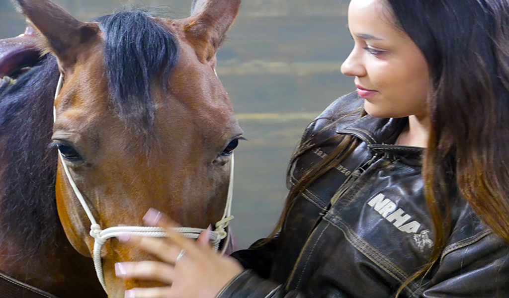 “This is Steve.” Adrianna Runzo introduces her horse as she cinches his saddle. “I love him.