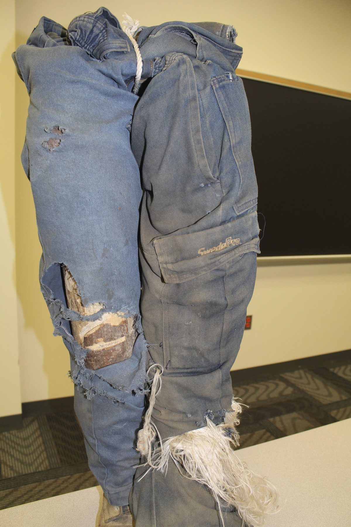 This was most clear when he showed a mannequin with one leg badly cut from a saw mishap, and the other leg unharmed because that leg was clothed in chaps.