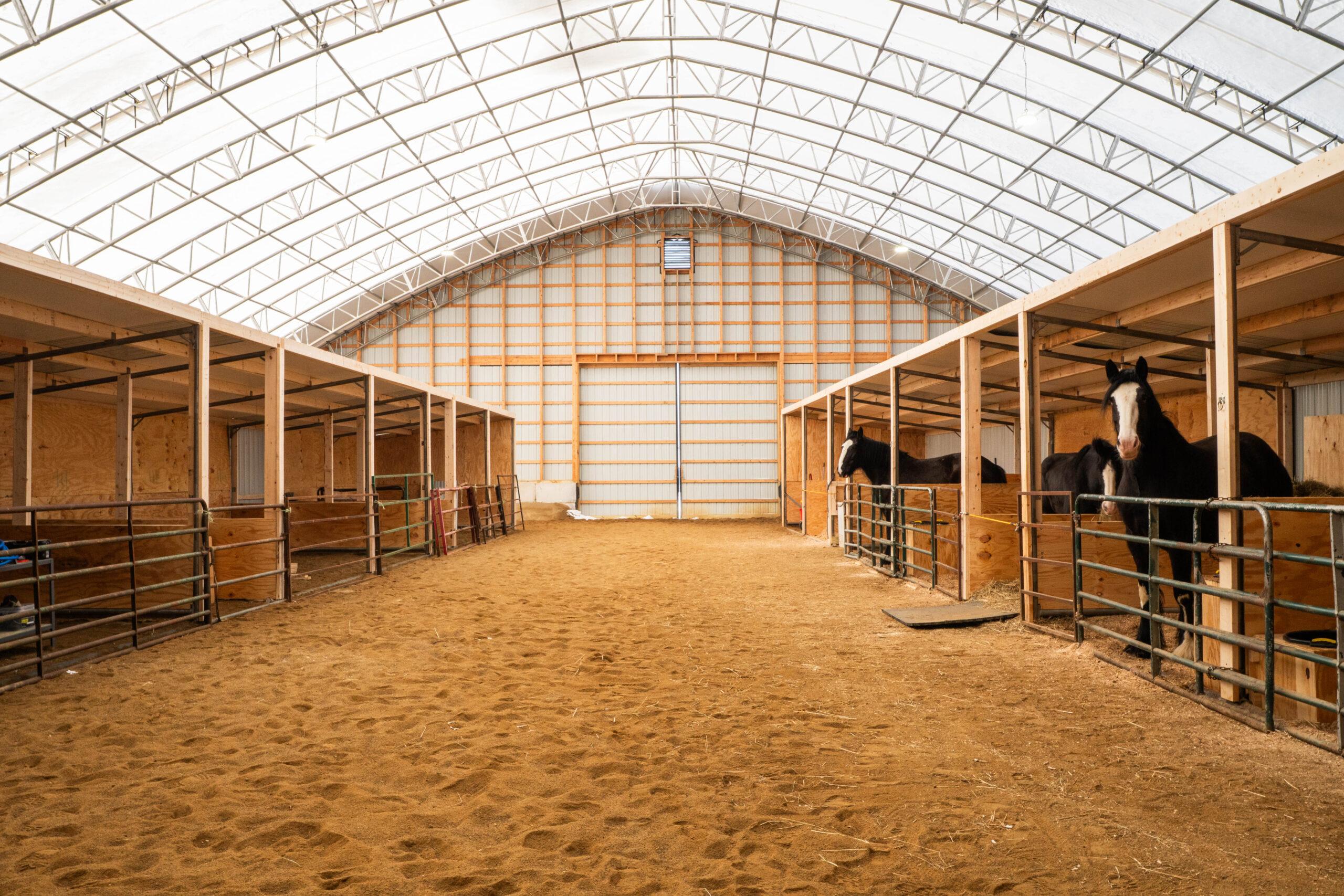 They also use the arena to temporarily house foaling mares and their two mini donkeys via run-in sheds.