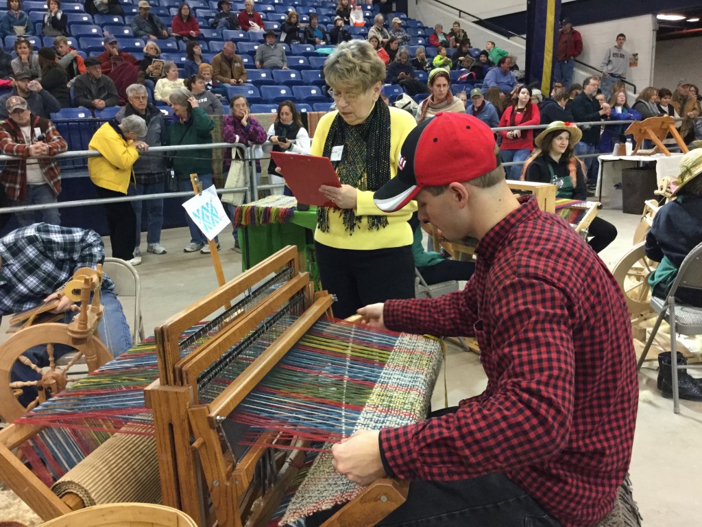 Josh Stoner of the Wizards of Wool from Adams County PA, is busy on the loom during the youth Fleece to Shawl contest.12