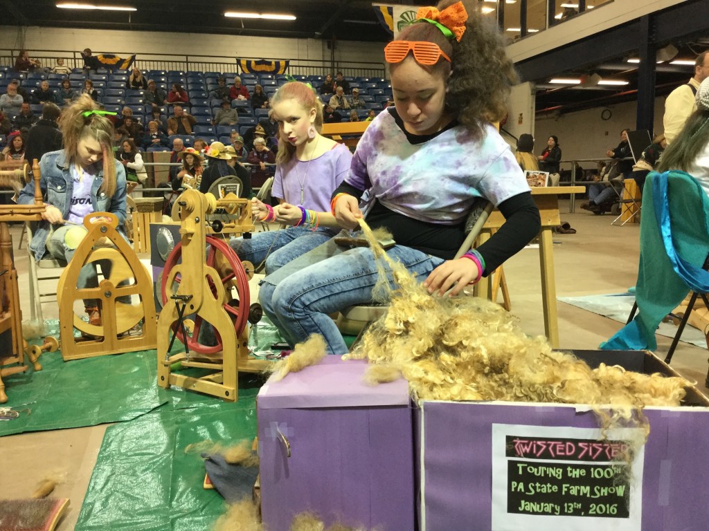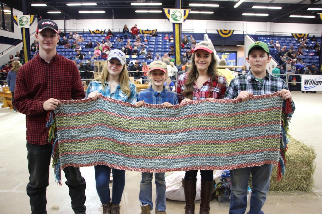 (L-R) Josh Stoner, Marissa Shoemaker, Cate Kidwell, Dorothy Marquet and Jacob Stoner of the Wizards of Wool team from Adams County took first place in the Fleece to Shaw competition.8