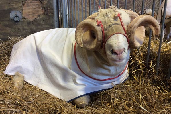 Judge Steve Myers looks over a Hampshire class in the junior breeding sheep competition at the 2016 Pennsylvania Farm Show.21