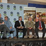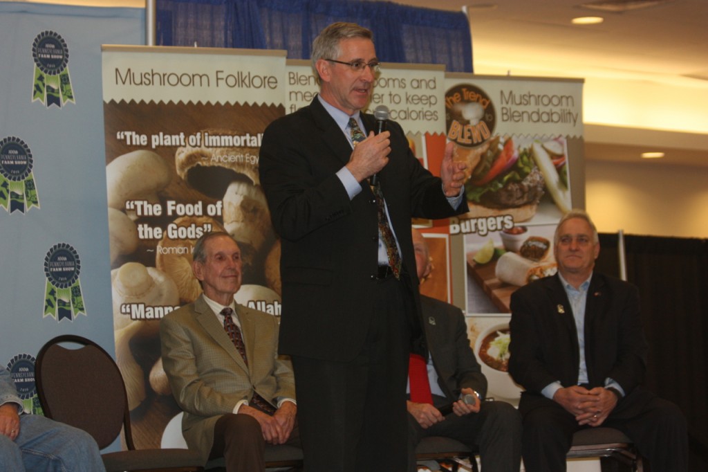Michael Smith, executive deputy secretary of agriculture, introduces the panel of current and former Pennsylvania secretaries of agriculture (L-R), Samuel Hayes, 1997-2003; current secretary Russell Redding; Kent Shellhamer, 1977-79; Dennis Wolff, 2003-2009; and George Greig, 2011-15. Former secretary Boyd Wolf, 1987-95, was also in the audience, but did not participate.10