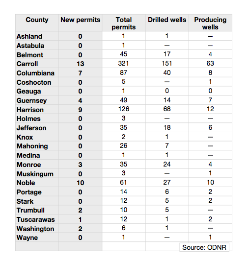 The leader for the number of permits issued continues to be Carroll County. There were nine permits issued in Lee Township, three in Augusta and one in Perry Township. All of the permits were issued to Chesapeake Energy.