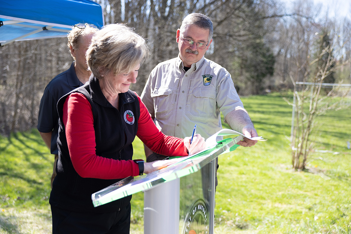 SOLON, Ohio — Ohio Department of Natural Resources Director Mary Mertz and Solon Mayor Edward Kraus, April 13, officially dedicated Solon Woods as Ohio’s 143rd state nature preserve, and the first in Cuyahoga County.
