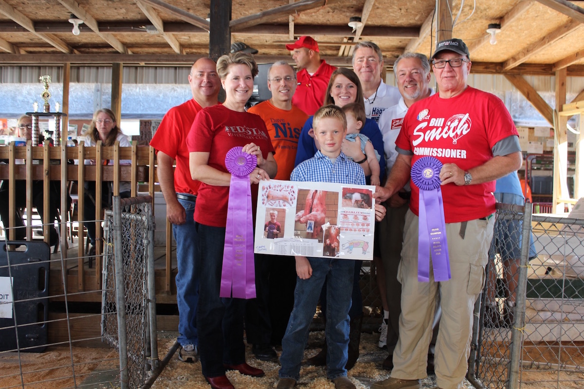 Tim Courtney sold his 233-pound grand champion carcass hog for $4 a pound to Alex Zumbar for treasurer, Judge Rosemarie Hall, Dave Nist for judge, Rep. Christina Hagan, John Hagan and Hagan Heating and Plumbing, Bill Smith for commissioner, and Kishman’s IGA.